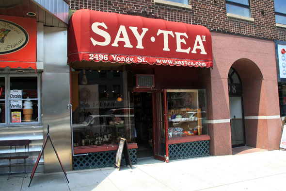Say Tea II is a quaint teashop that sells tea, coffee, and an assortment of tea paraphernalia. The tiny shop has been around for 6 years, and is not to be confused with Say Tea on Bloor Street, which is run by separate owners. I thoroughly enjoyed this shop as it’s decorated and furnished like a cozy kitchen. Several cedar and oak cabinets and shelves are filled with tubs of loose-leaf tea, teapots, mugs, and saucers. They even have a small selection of marmalade jam. Read my full review at BlogTO.